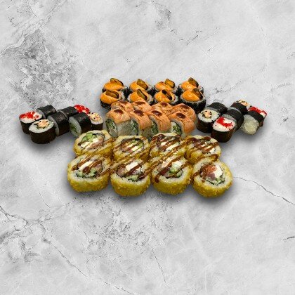Запеченная "Калифорния с угрём", Запеченная "Калифорния MIX", Жаренная "Калифорния с крабом", Жаренная "Калифорния с креветкой".