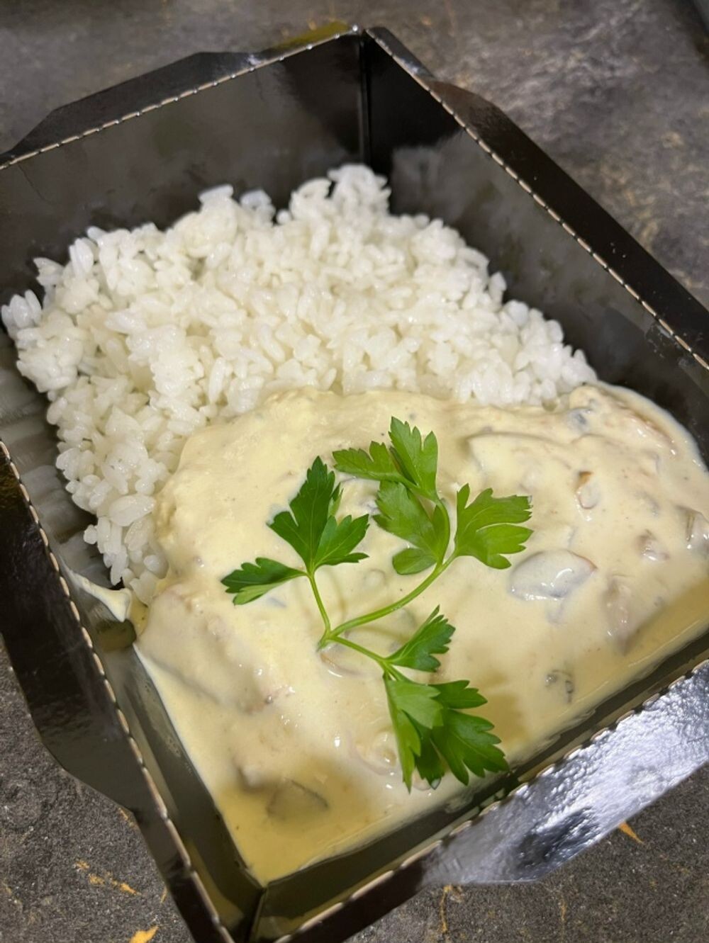 Куриное филе под сырно-ореховой шапочкой с рисом