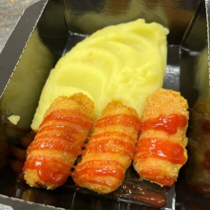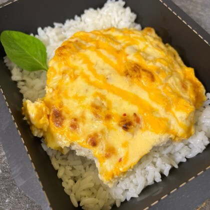 Котлета паровая с ананасом под сырной шапочкой с рисом