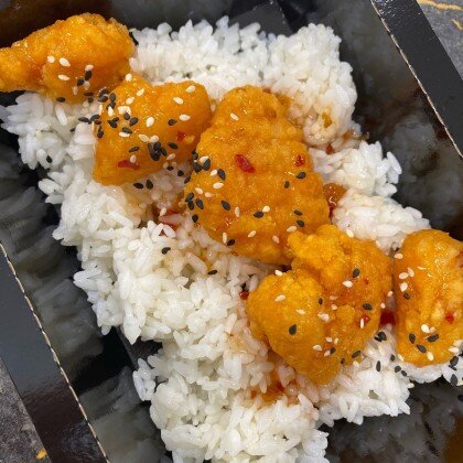 Японский бокс с куриной грудкой в соусе сладкий чили