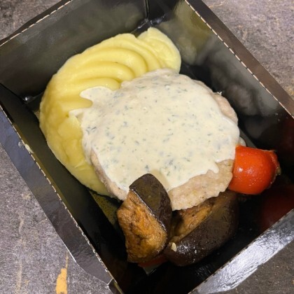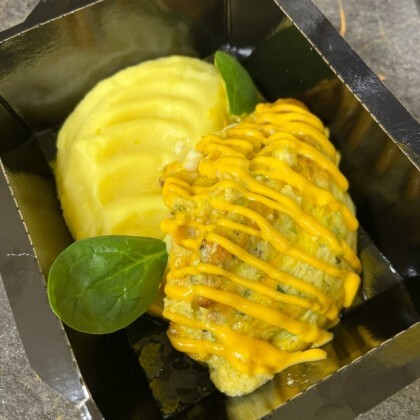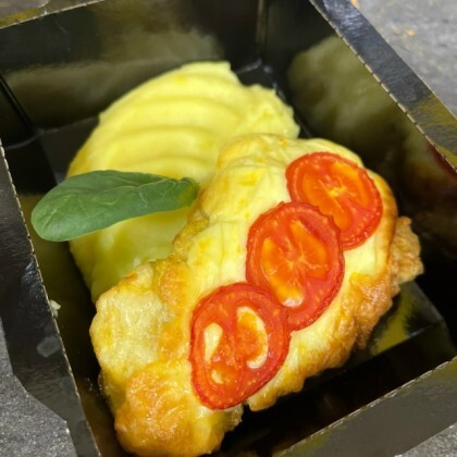 Филе куриное с ветчиной под сырной шапкой с картофельным пюре