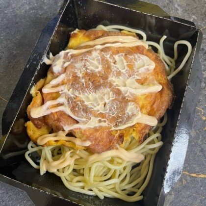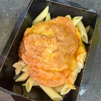 Домашняя котлета с ветчиной и двойным сыром с макаронами