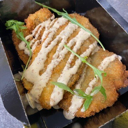 Запеченная треска под сырной шапочкой с пюре с соусом тар-тар
