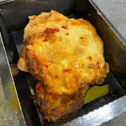 Свинина с грибами под сырной шапочкой с сырным соусом