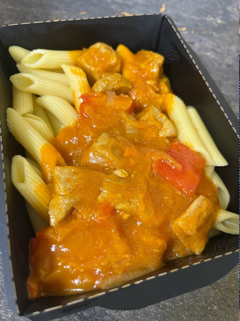 Куриная грудка в соусе карри со спагетти