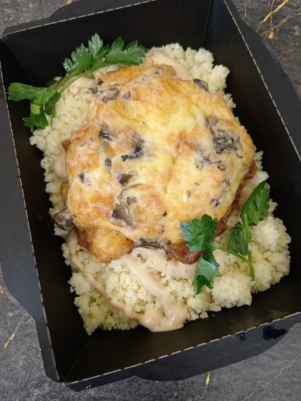 Треска под грибной шапочкой с кус-кусом