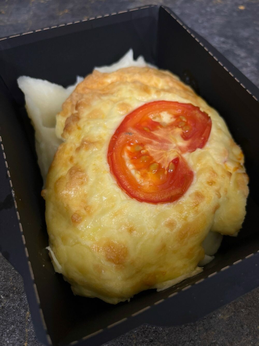 Свинина запеченная под сырной шапочкой с помидором с пюре