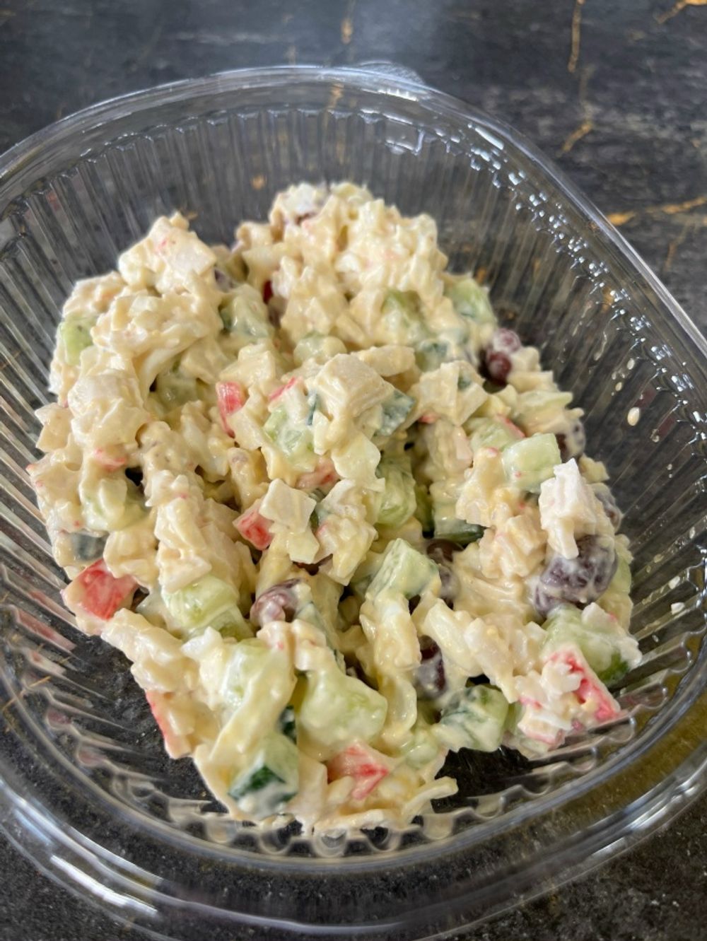 Салат с крабовыми палочками ,грибами ,луком и яйцом