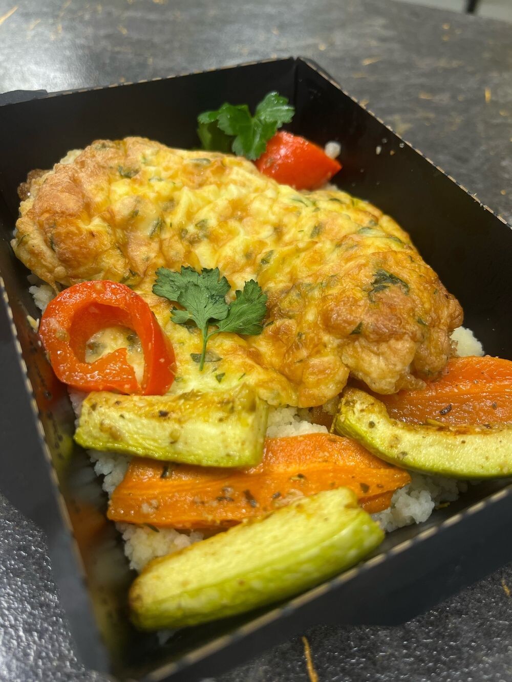 Куриное филе под овощной шапочкой с паприкой с рисом