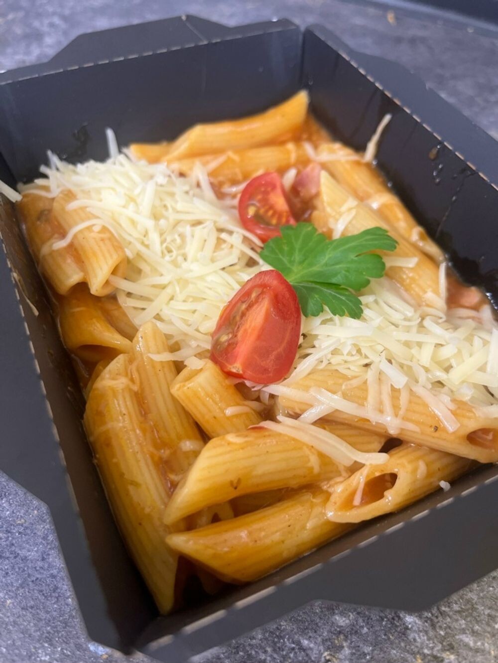 Пенне с ветчиной в томатном соусе с пармезаном