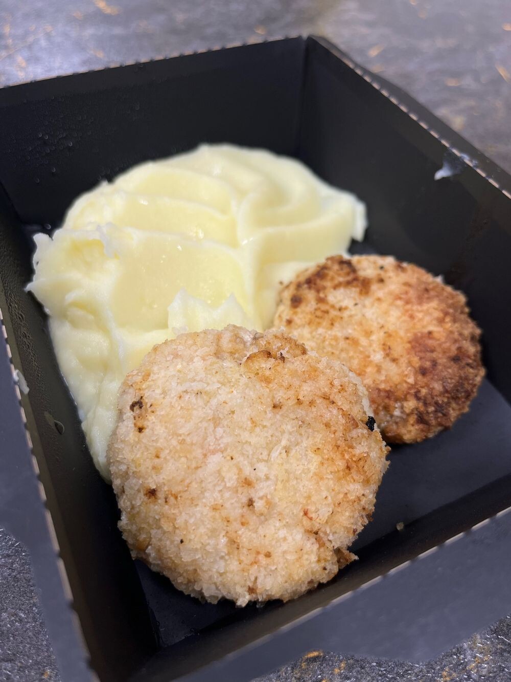 Судак в сырной панировке с кус-кусом и цветной капустой