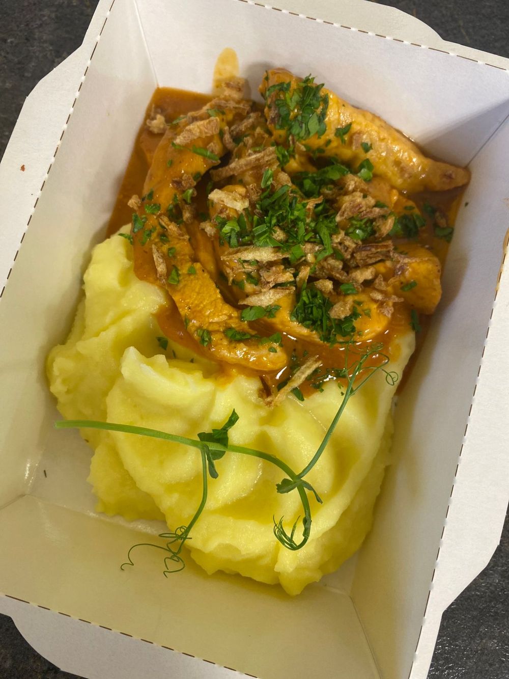 Филе куриное с ветчиной под сырной шапочкой с картофельным пюре