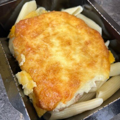Куриное филе с ветчиной под сырной шапочкой с макаронами