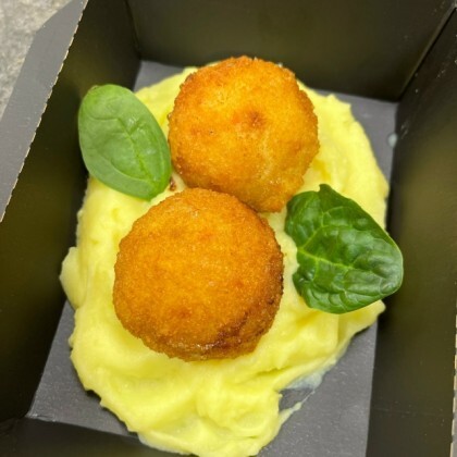Тефтели из лосося и снежного краба с пюре