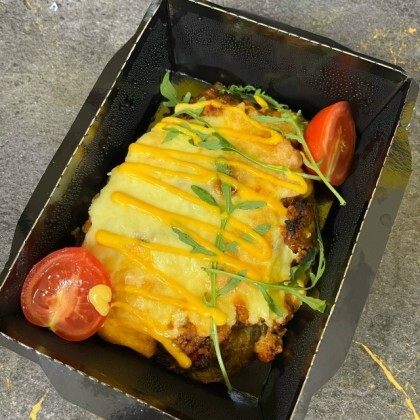 Запеченный баклажан с мясной начинкой под сырной шапочкой