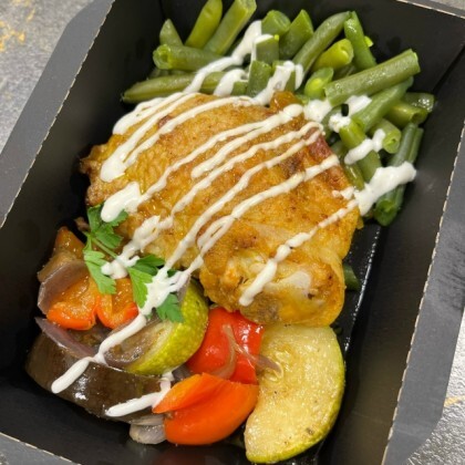 Куриное бедро с запеченными овощами