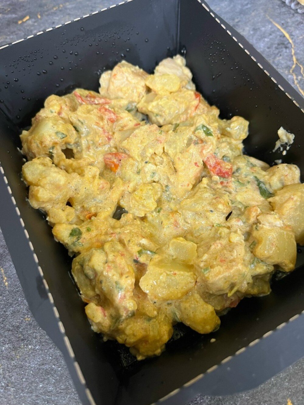 Куриные фрикадельки в сыре с печеным картофелем и овощами